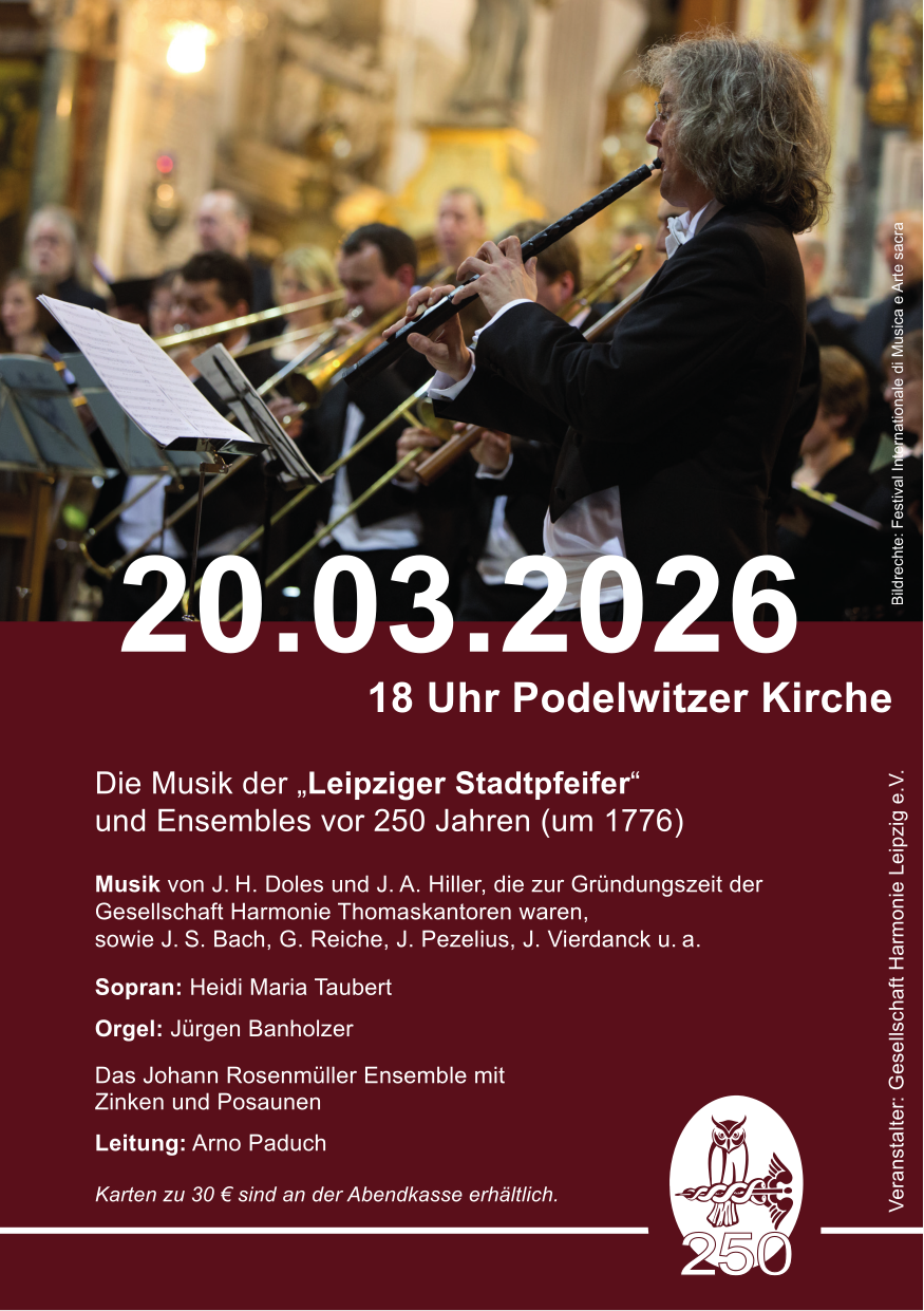 Am Freitag, dem 20. März 2026, erklingt um 18.00 Uhr in der Podelwitzer Kirche festliche Musik aus der Zeit um 1776. Im Mittelpunkt stehen Werke der Leipziger Stadtpfeifer und der Ensembles, die vor rund 250 Jahren das Musikleben der Stadt prägten.